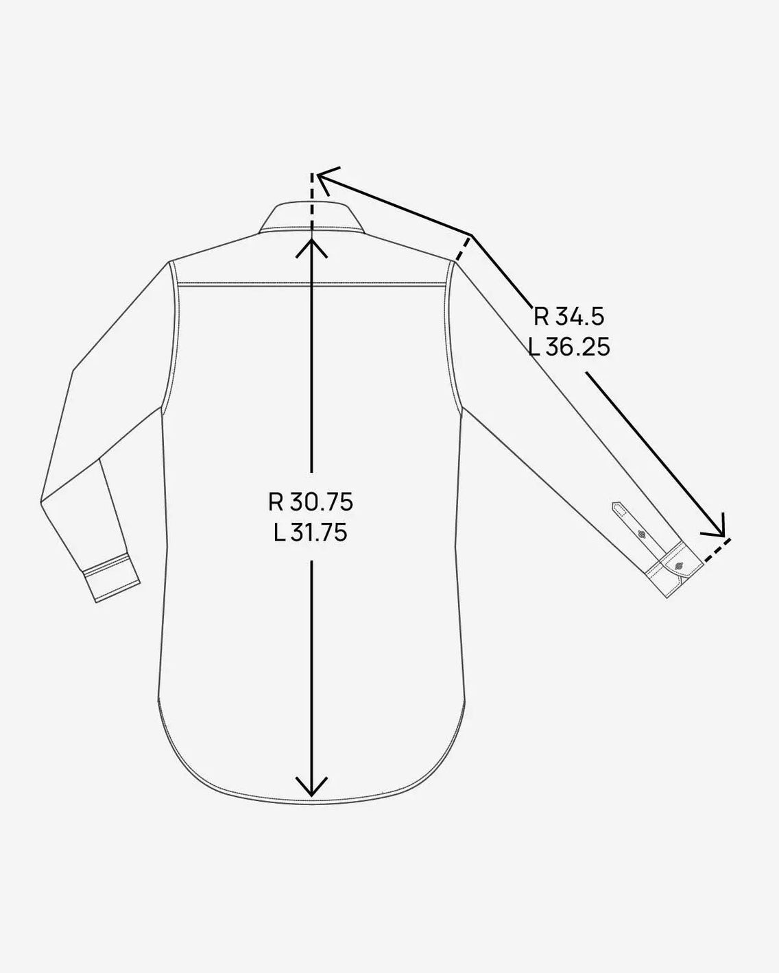 Regular sleeve length | 34.5 | 34.75 | 35.25 | 35.75 | 36 | 36.5 | 36.75 | 37 | 37.5 |